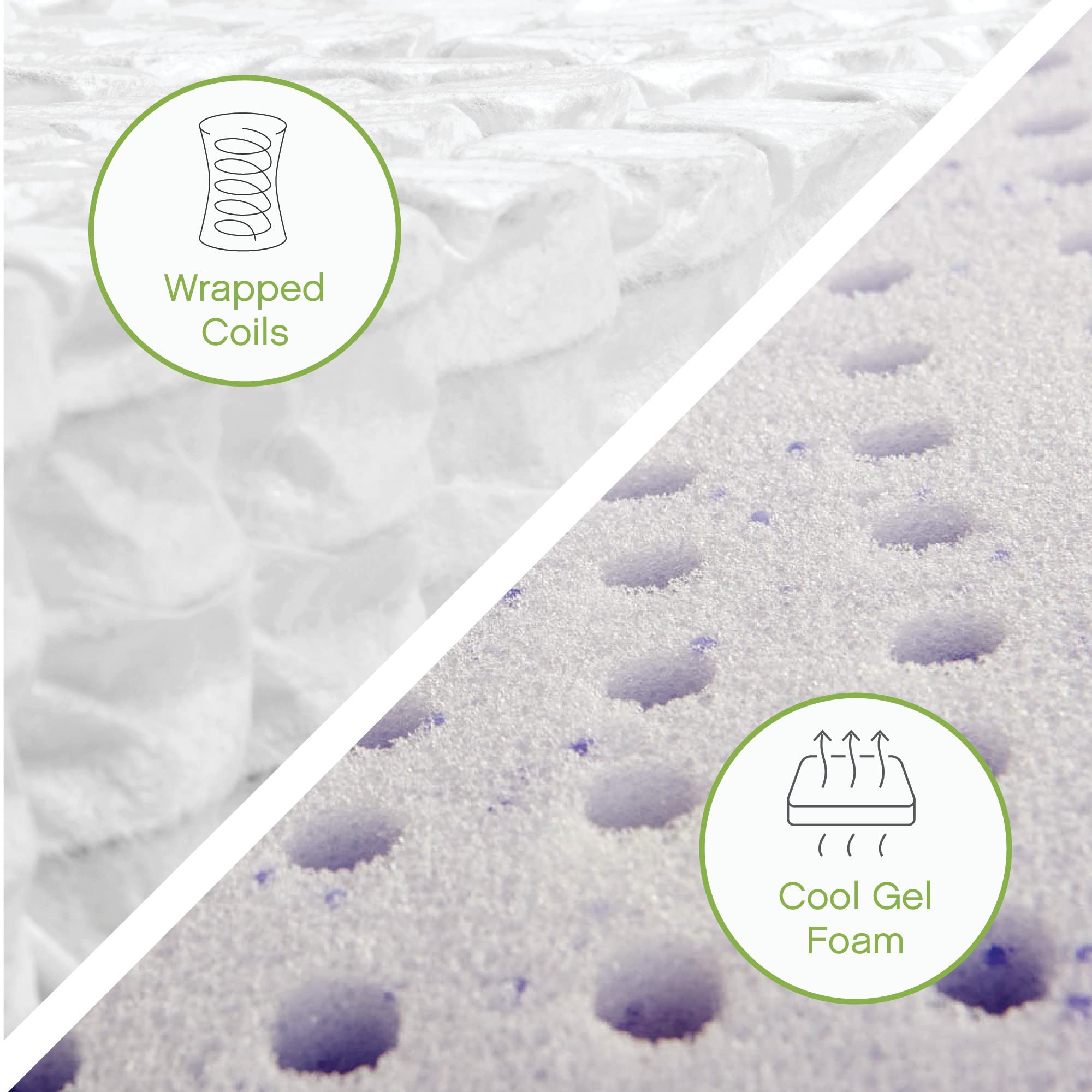 • Gel-infused memory foam layer draws heat away from the body allowing for a more comfortable refreshing night's sleep; wrapped innerspring coils prevent motion transfer between partners for an undisturbed might of rest